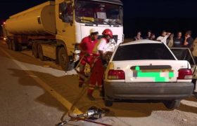 آتش نشانان با حضور در محل حادثه مشاهده کردند یک دستگاه خودروی تیبا با دو نفر سرنشین که یک خانم و یک آقا حدودا ۳۰ ساله در آن بودند بعد از خارج شدن از مسیر و ورود به لاین مخالف به شدت و به صورت رخ به رخ با یک خودروی وانت نیسان برخورد کرده بود که خودرو واژگون و کاملاً متلاشی شده بود. طی این حادثه سرنشینان خودروی سورای به بیرون پرت شده بودند و راننده جوان خودروی نیسان نیز در اتاقک خودرو گرفتار شده بود و این در شرایطی بود که سرنشین خانم خودروی تیبا و راننده آقای خودروی نیسان در میان قطعات ویران شده خودروها محبوس بودند.