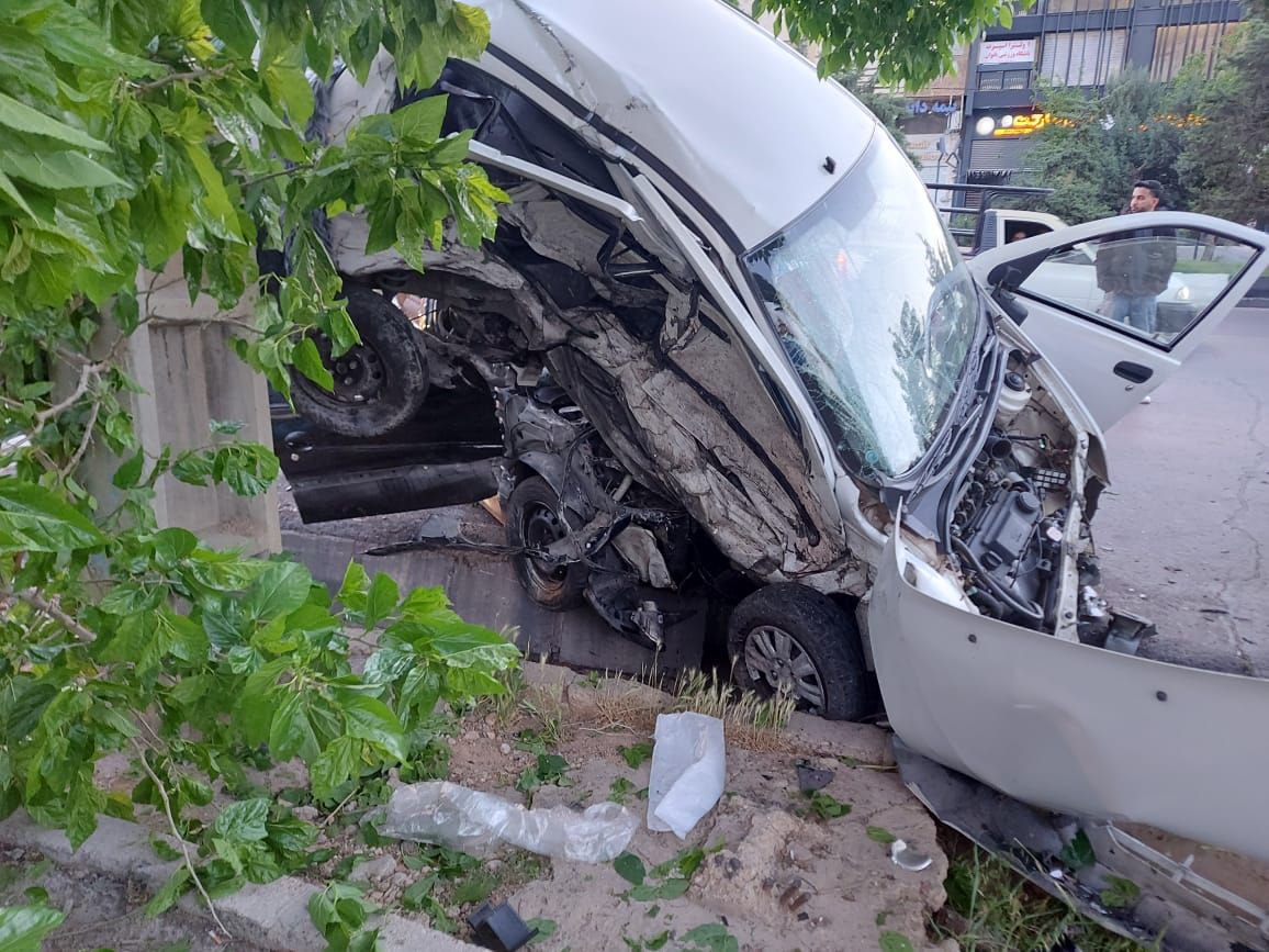 در این حادثه، یک دستگاه خودرو سواری پژو ۲۰۶ به دلیل نامعلومی با سرعت زیاد با یک خودرو تیبا برخورد کرد.