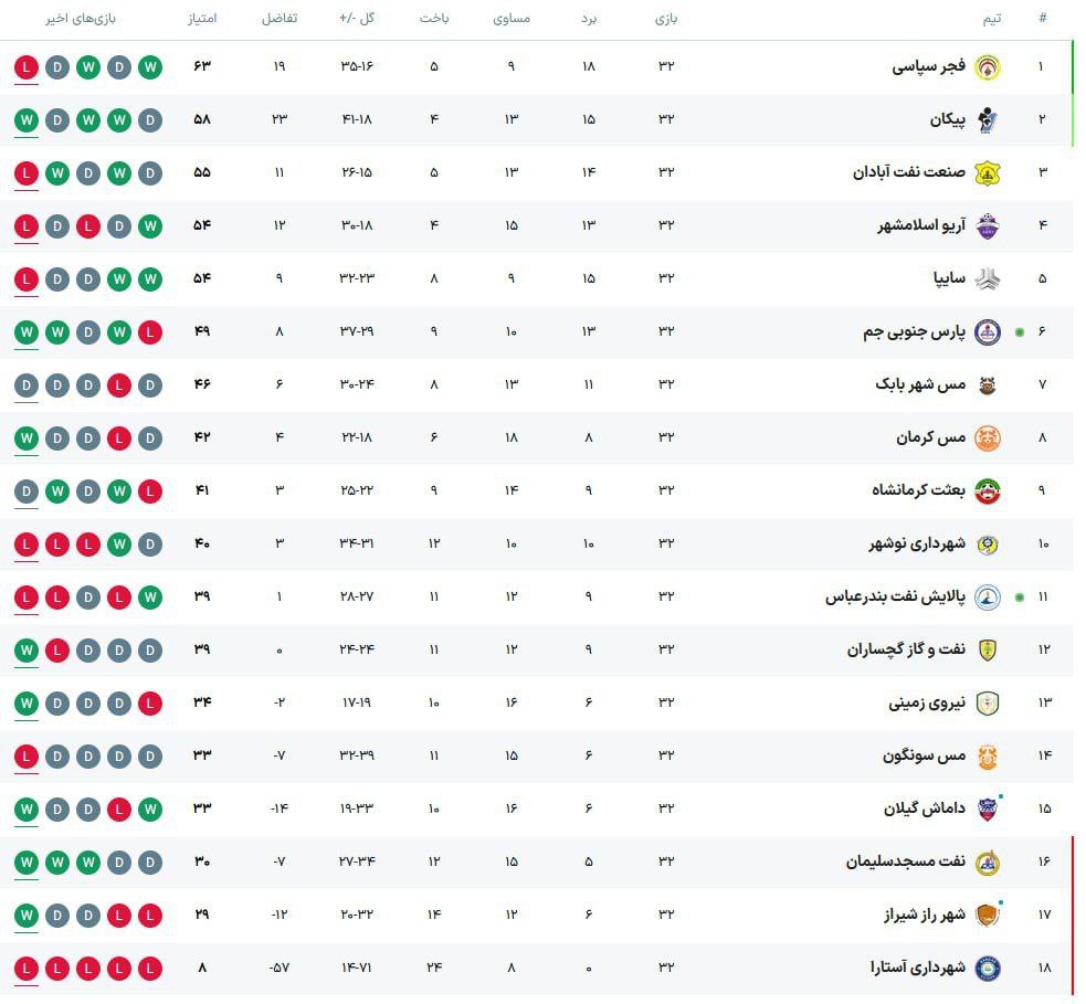 با این نتایج، تیمهای پیکان (۵۸ امتیاز)، صنعت نفت (۵۵ امتیاز)، آریو اسلامشهر (۵۴ امتیاز) و سایپا (۵۴ امتیاز) به ترتیب در ردههای دوم تا پنجم قرار گرفتند تا فجر سپاسی با ۶۳ امتیازش صعودش به لیگ برتر قطعی شود.