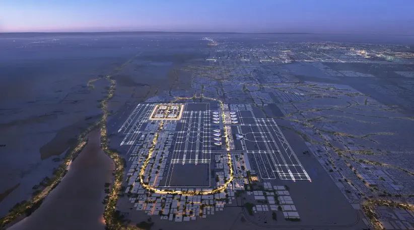 این پروژه بخشی از چشمانداز ۲۰۳۰ عربستان سعودی است و با همکاری شرکتهای بینالمللی مانند Foster + Partners (طراحی فرودگاه)، Mace Group (مدیریت پروژه) و Jacobs (مشاوره زیرساختها) به اجرا در میآید. استراتژی طراحی شامل ایجاد یک “آئروتروپولیس” نوآورانه با بهرهبرداری از انرژیهای تجدیدپذیر، نورپردازی طبیعی و سازگاری با فرهنگ محلی است و هدف کسب گواهی LEED Platinum برای پایداری محیطی دارد.