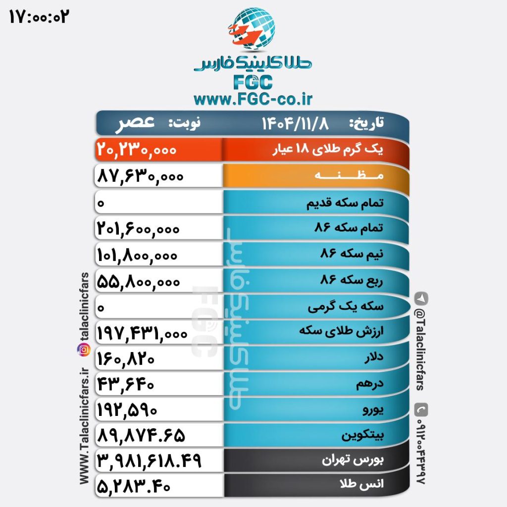 قیمت طلا، سکه و ارز در بازار شیراز/ ۸ بهمن ۱۴۰۴